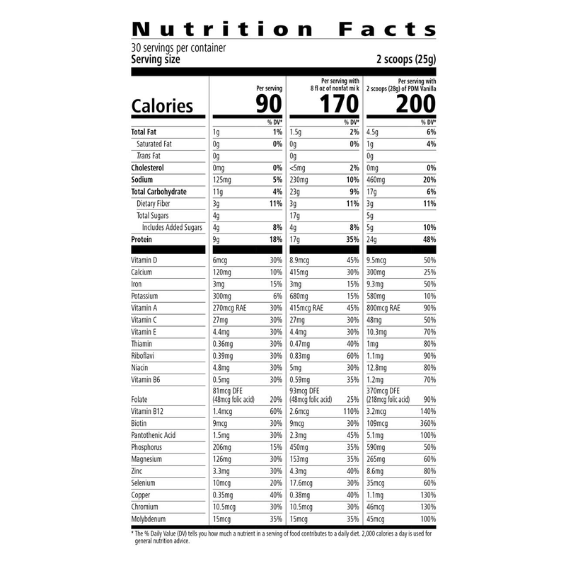 - 17 g to 24 g* of high-quality protein to satisfy hunger (when prepared with 8 fl. oz. of nonfat milk or one serving (2 scoops) of Protein Drink Mix)