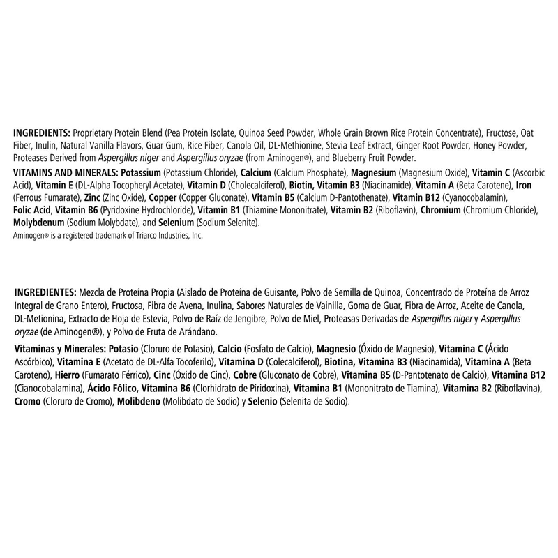 - 10 g of a high-quality, easily digestible protein blend (pea, rice, quinoa) to help sustain energy and satisfy hunger