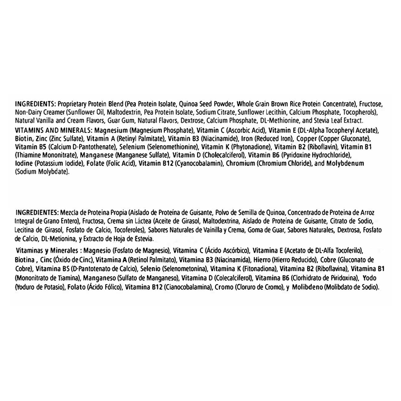- 15 g of a high-quality, easily digestible protein blend (pea, rice, quinoa) to help sustain energy and satisfy hunger